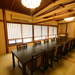 築80年を超える古民家を改築した、温かみのある落ち着いた雰囲気の店内。個室は3部屋完備しており、2階貸切で20名程度まで利用可能です。大切な方へのおもてなしにも最適。お昼はお部屋代はいただいておりません。周りを気にせずお食事を楽しめるため、宴会はもちろん接待や法事にもぴったり。また、気軽にご利用いただけるテーブル席もご用意しております。