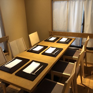 閑静な住宅街にひっそりと佇む、古民家一軒家の当店。入口から始まる、昔の蔵を思わせる和の雰囲気に心躍ります。店内に足を踏み入れると、木を基調とした温かみに満ちた空間がお出迎え。お席はカウンター7席、2組限定のテーブル席、そして6名様までの個室も完備しました。照明や円窓など、随所に障子や格子を使用した明るい和空間でゆったりとお寛ぎください。お祝いプレートも承りますので、特別な日にもお待ちしております。