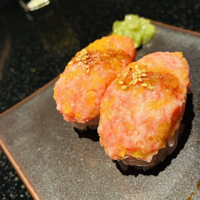 ▶We use raw meat in our restaurant. Children, the elderly, pregnant women, people who are not feeling well, or people with weak immune systems should avoid