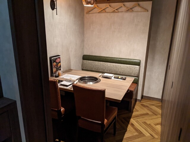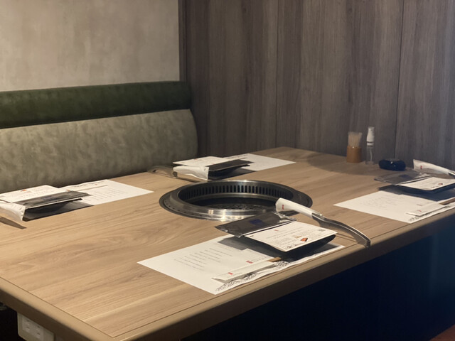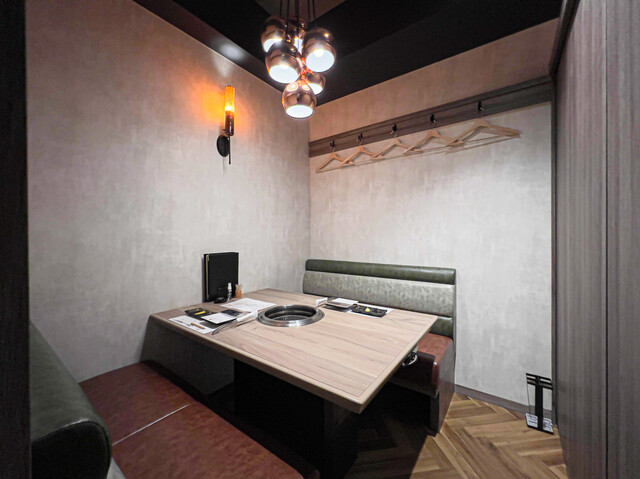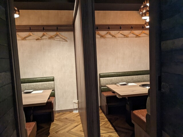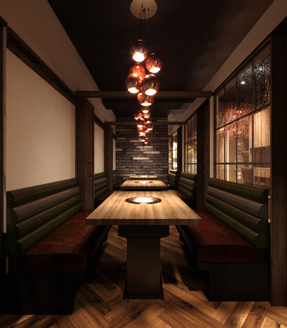 全席個室。 最大12名様までご利用頂けます。 5名様以上の人数でのご利用の場合は仕切りの扉板を外した2テーブルを同じ個室空間でご利用頂く場合がございます(9名様以上は3テーブル)。