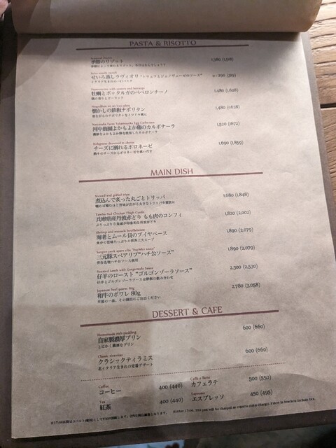 コペルト【席料】 1名様400円(アラカルトのみ)