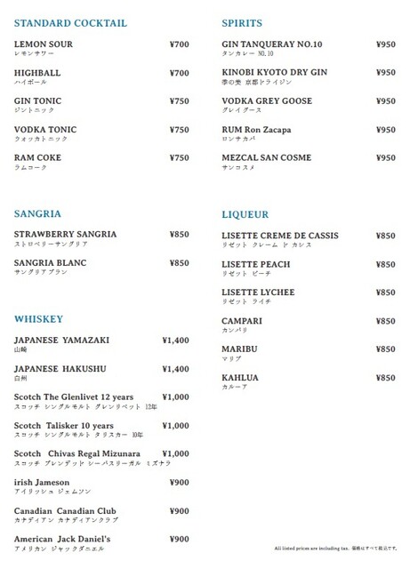 L.O. 料理21:00 ドリンク21:30