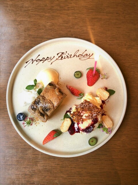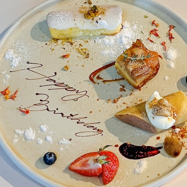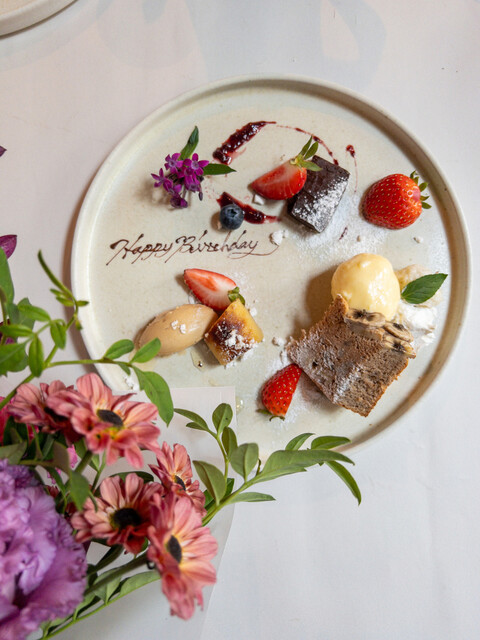 【メッセージ付き2種デザートの盛り合わせプレート】アラカルト(単品お食事)利用の方で、お祝い希望の方はこちらからご覧ください。2品