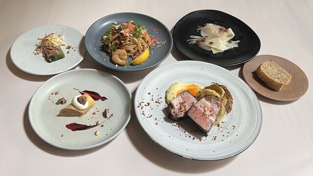 【ディナー ベーシックコース】全5品 で構成されたコース。友人とのご利用にぴったり!プリフィクスでご案内。お祝いには無料でメッセージプレートご用意いたします。5品