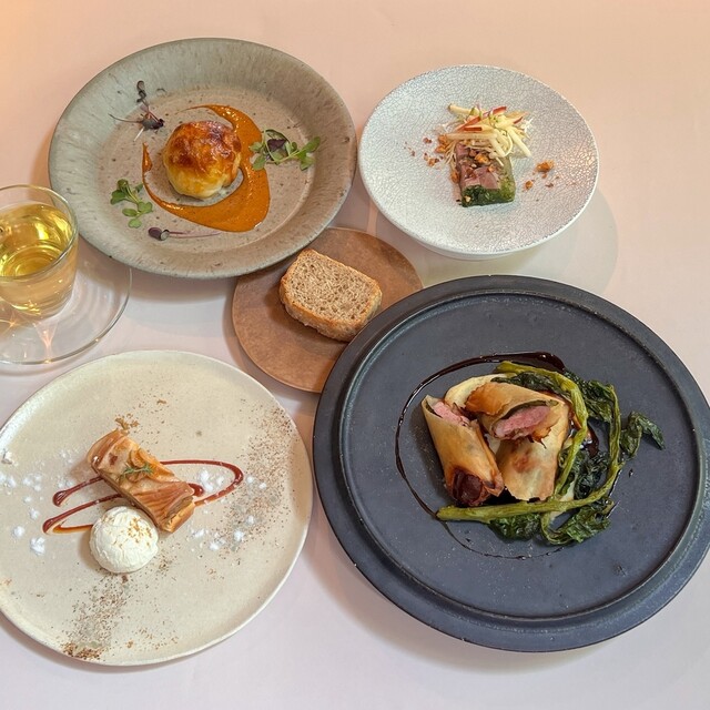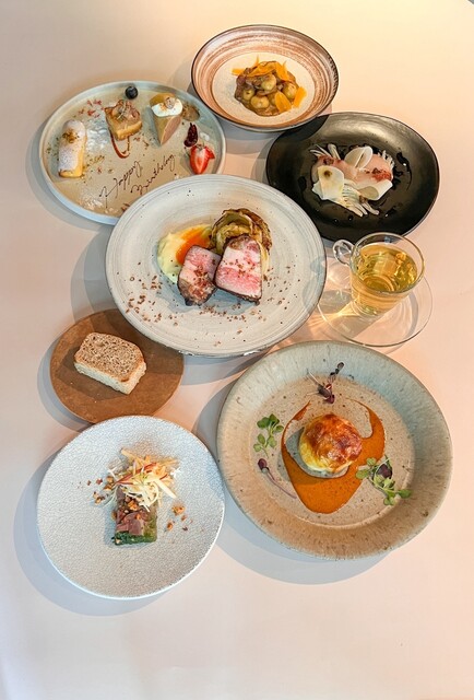 【ディナー シーズナルコース】全8品 デートにピッタリ! 季節の食材を織り交ぜたコース。プリフィクスでご案内。お祝いには無料でメッセージプレートもご用意致します。8品