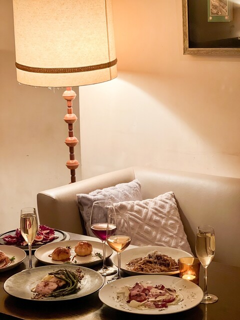 【ディナー 月~木限定・乾杯スパークリング付 シーズナルコース】全8品 こちらからご予約でスパークリングワインをプレゼン!前菜・メイン・ヌードル・デザートは選べます。8品