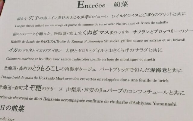 ◯ジビエが苦手なお客様には含まれない季節の旬の食材を使ったコースをご用意できますのでお伝えくださいませ。