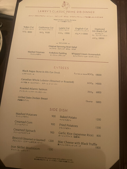 ロウリーズ・ザ・プライムリブ 恵比寿ガーデンプレイス店(Lawry’s The Prime Rib) 公式