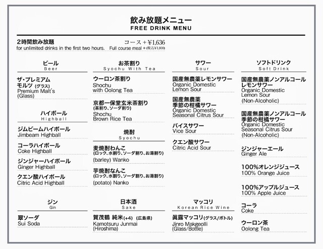 L.O. 料理22:00 ドリンク22:30