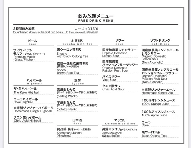 L.O. 料理22:00 ドリンク22:30