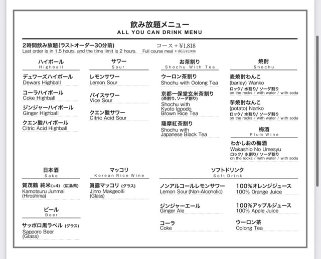 L.O. 料理22:00 ドリンク22:30