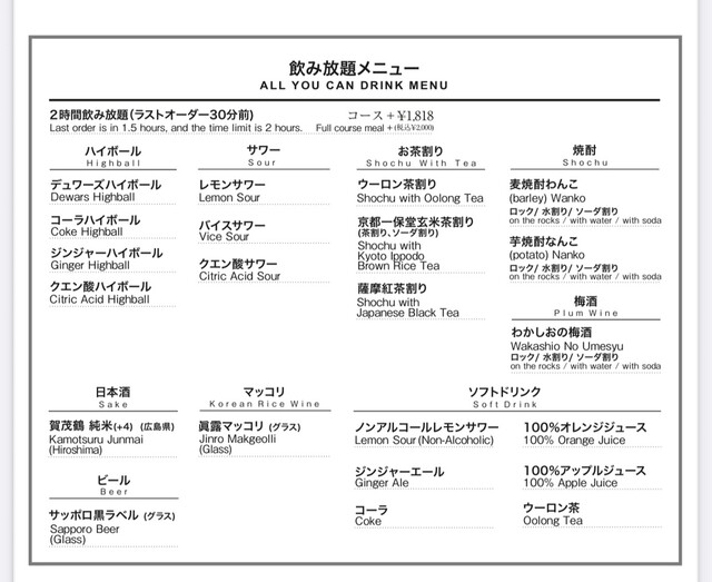 L.O. 料理22:00 ドリンク22:30
