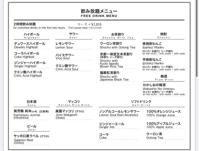 L.O. 料理22:00 ドリンク22:30