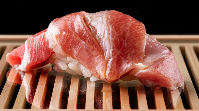 お品書きは「おまかせコース(22,000円)」のみ。前菜やつまみ5品、握り12貫、巻き物、玉子の構成でお愉しみいただけます。日本近海の天然物を買い付け、まぐろやコハダ、穴子などを大将が熟練の技で織りなし江戸前鮨に。日本料理の経験を活かし、四季折々の食材で前菜やつまみも繊細に作り上げます。テーブル席でもお鮨を一貫ずつご提供。感覚を研ぎ澄まし向き合った珠玉の一貫をご堪能ください。