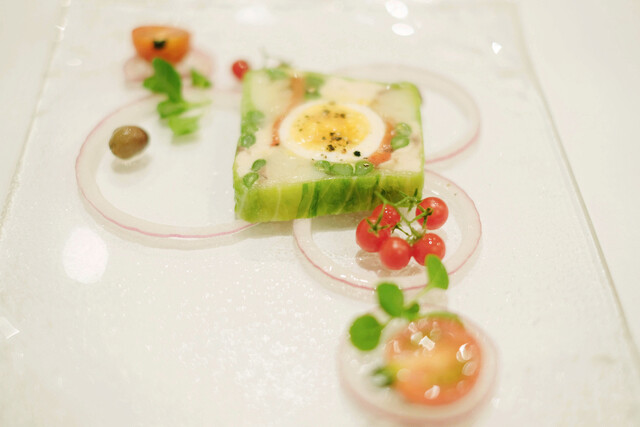大阪万博でも出展された、特別なスパークリングワインとレザンファンギャテの料理とのマリアージュをお楽しみください。
