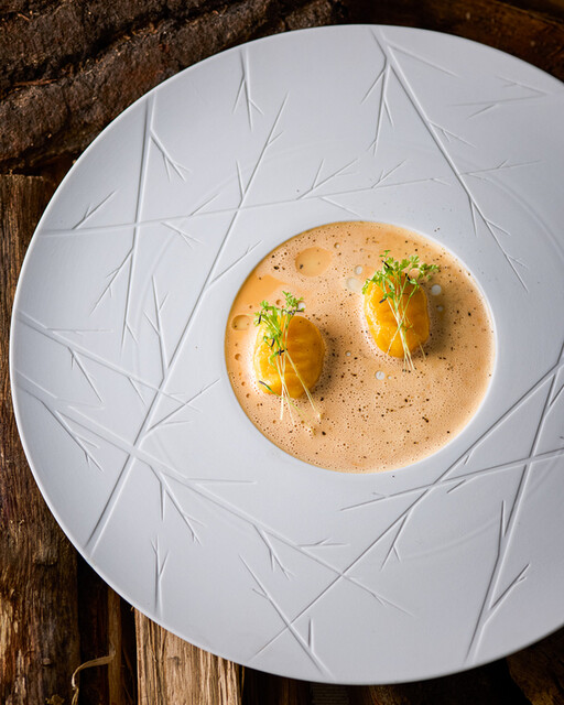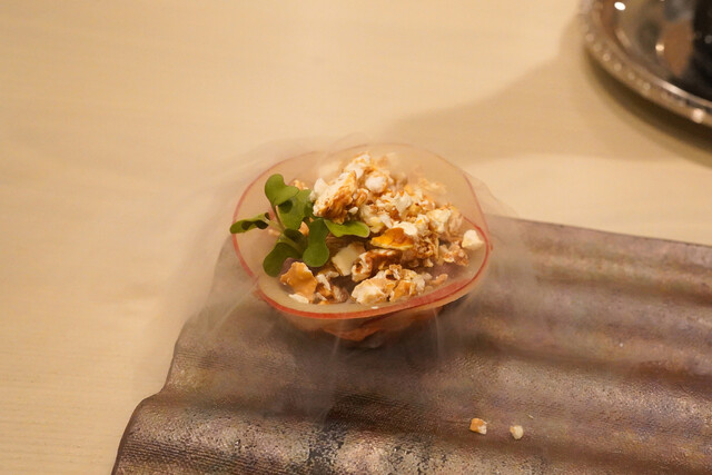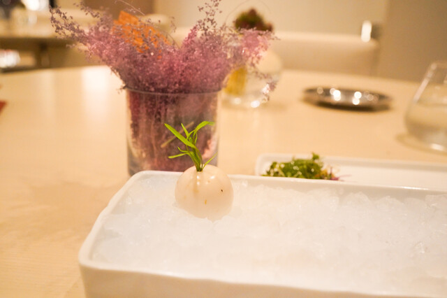 ご好評いただいてるお鮨風の一品をはじめ、全国から厳選された旬の素材をシェフ田熊が華麗に照らす薪火フレンチの新境地をお届けします。