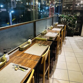 大都会の喧騒からスッとぬけた閑静な路地に店を構えています。2階へと続く外階段を上がってお入りください。お席の間隔を広くとった開放的な空間にはグリーンがあしらわれ、ナチュラルテイストな趣となっています。大きな窓の外には桜の木や、西新宿の夜景も美しく望めます。