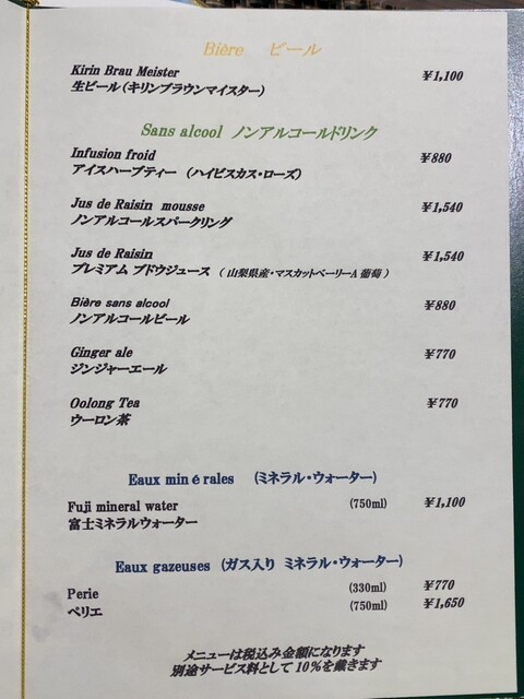サービス料10% 頂戴しております
