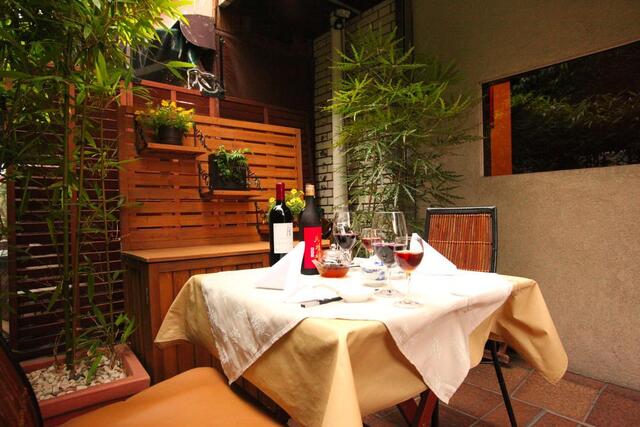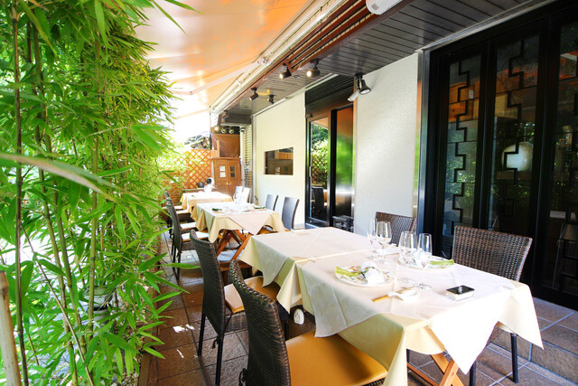 テラス席のご予約はお電話にて承ります。ワンちゃんと一緒に素敵なひとときを