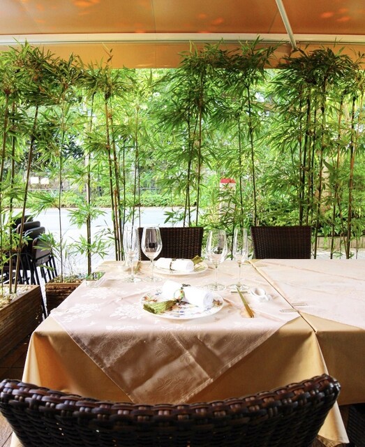 ランチタイム、ディナータイムどちらも利用可能。新宿御苑の緑を観ながらお食事を