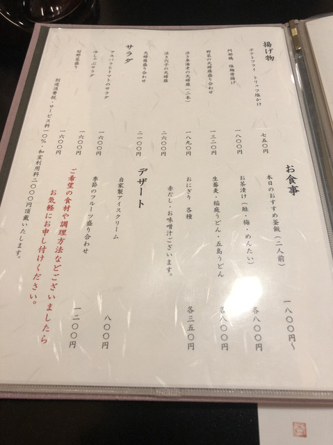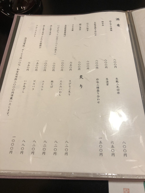 サービス料10%  掘りごたつ個室チャージ2000円(税抜)