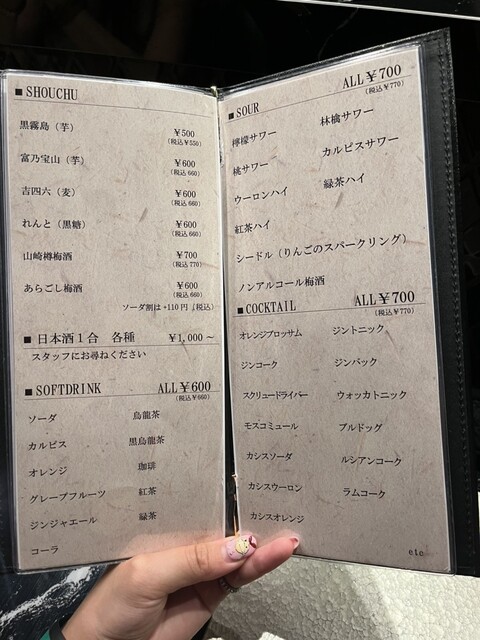日本酒あり、焼酎あり、ワインあり、カクテルあり