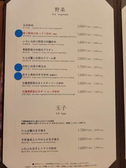 ※消費税(10%)の他に別途サービス料(10%)を頂戴いたします。
