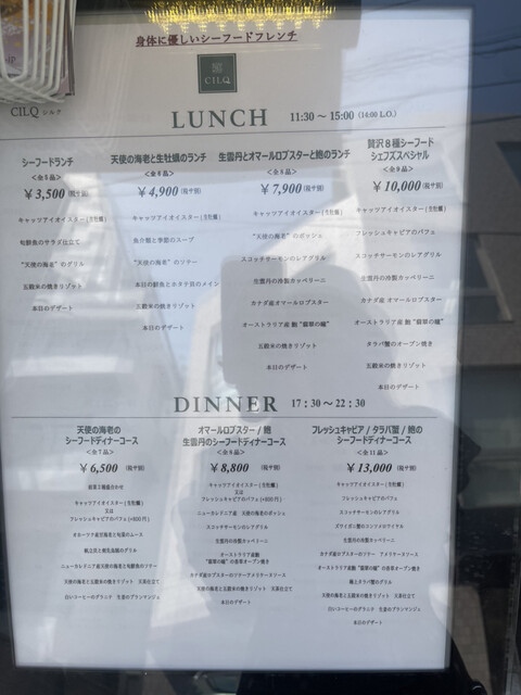 • フレンチ、シーフード、イタリアン