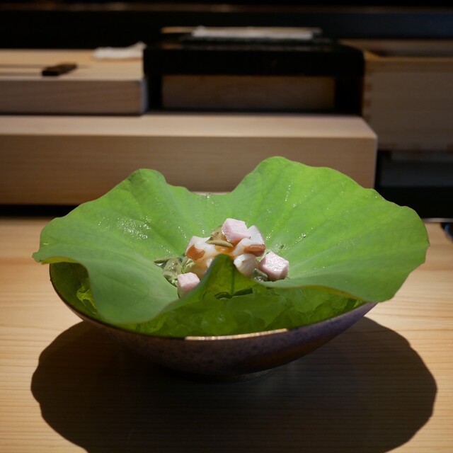 日本全国の美食をたくさんの人に知ってもらいたいという想いで、選りすぐりの旬の食材を取り揃えております。メニューはおまかせコースのみ!手間隙かけて仕込み、温度や水分量、脂の量までもネタごとに調整することで素材本来の力を引き出す江戸前寿司をはじめ、素材に拘った料理、デザートなど鮨mしか出来ないスタイルで提供致します。思わず笑みがこぼれる、魅惑のコースをお愉しみください。