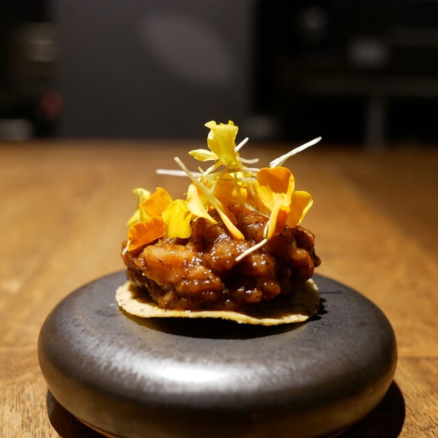 フレンチシェフとしてのキャリアと、ニューヨークなどの食の多様性を持つ都市の三ツ星レストランで培った感性を活かした新しい「メキシカン・フレンチ」。メキシコ料理の持つ独自性とフレンチや日本の調理技術、発酵などを駆使しながら、日本の豊かな食材を掛け合わせたコースをお届けします。近年注目の「メキシカン」をアップデートした、希少性溢れるラグジュアリーな食体験をお愉しみください。