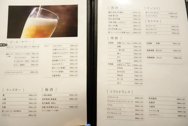 日本酒あり、焼酎あり、ワインあり、カクテルあり