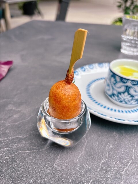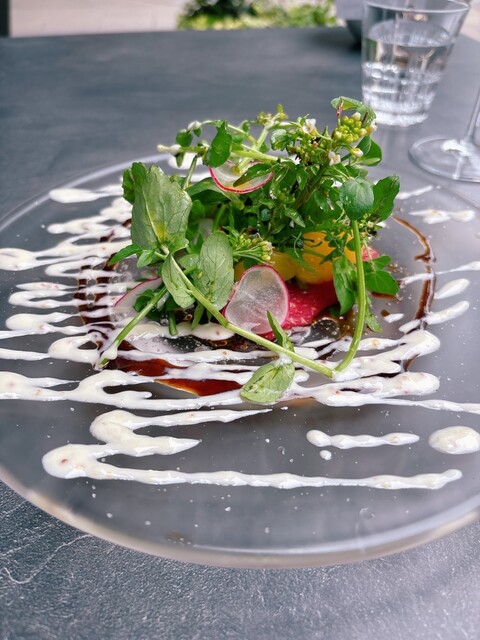 店内中央には窯焼きを取り囲んだカウンター席、そしてソファータイプのテーブル席など。ゆったりとお食事をしていただけます。"畑の伝道師"とも呼ばれるオーナーシェフ・渡邉明が、生産者の元へ直接足を運び、現場の方々と話すことでお肉やお野菜をセレクト。農家より直送する厳選食材を心ゆくまでご堪能ください。国産のA5和牛を盛り込んだコースもございます。