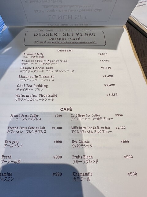 L.O. 料理14:00 ドリンク14:30