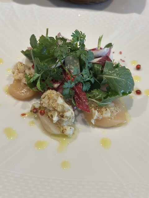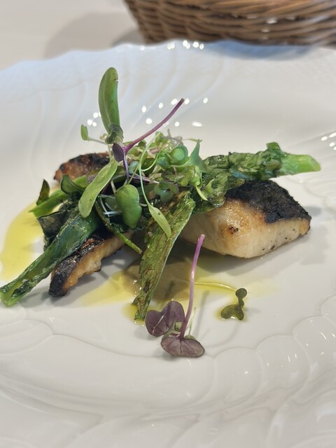 白とグリーンを基調にしており、落ち着く雰囲気をご提供しております。天井のテンペラ画は、イタリア・ヴェネト出身の若手アーティストがオステリア(居酒屋)の牧歌的な風景を、独特なタッチで<リストランテオステリア>のために描いたものです。お皿の料理と共に、店内に居ながらにしてイタリアの豊穣感を感じさせてくれます。皆様のご来店をお待ちしております。