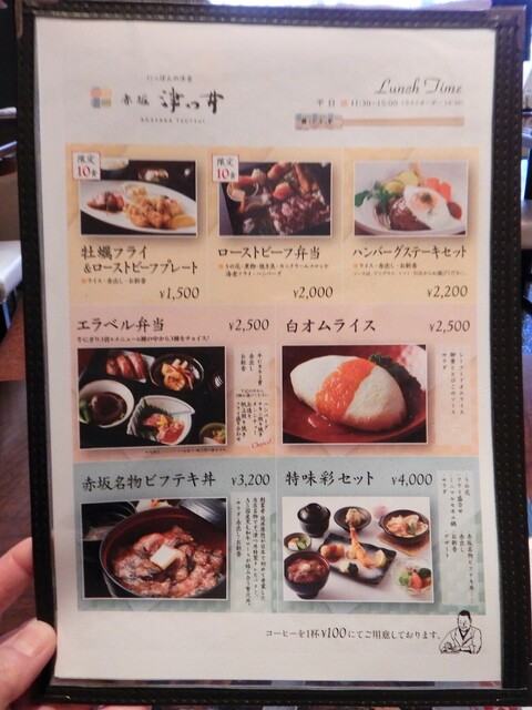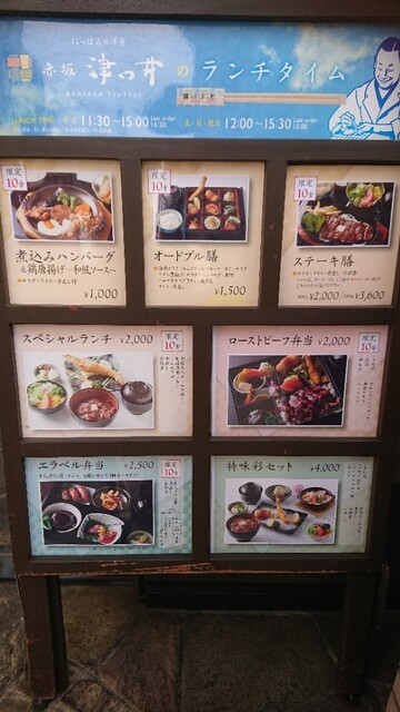 赤坂駅から少し離れた、隠れ家のようなにっぽんの洋食店。地下には本格和風の個室が5部屋あり、滝が流れる庭側個室、4名様までのイス席の完全独立個室など、昼はご家族でのご会食、夜はご接待など様々なシーンでご利用いただいております。洋食を日本人が悦ぶ味にと、隠し味に日本古来の調味料を使用しお箸で召し上がっていただく津つ井流のおもてなし。店内の謎かけ看板もお愉しみください。