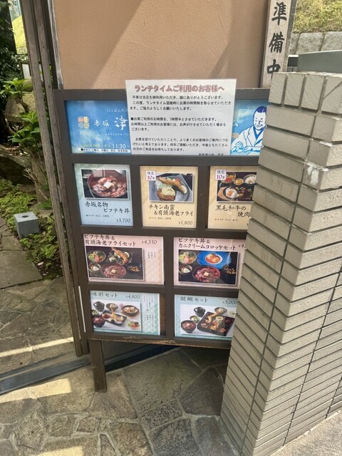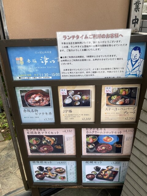 赤坂駅から少し離れた、隠れ家のようなにっぽんの洋食店。地下には本格和風の個室が5部屋あり、滝が流れる庭側個室、4名様までのイス席の完全独立個室など、昼はご家族でのご会食、夜はご接待など様々なシーンでご利用いただいております。洋食を日本人が悦ぶ味にと、隠し味に日本古来の調味料を使用しお箸で召し上がっていただく津つ井流のおもてなし。店内の謎かけ看板もお愉しみください。