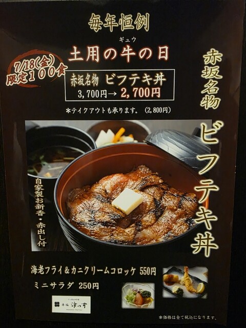 「箸で食べる洋食」を謳い続けて創業70余年。赤坂名物ビフテキ丼を是非ご賞味ください。
