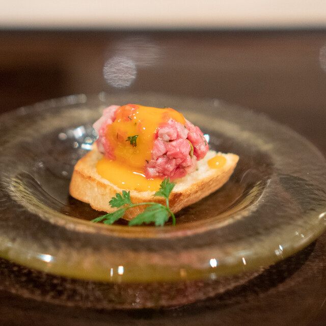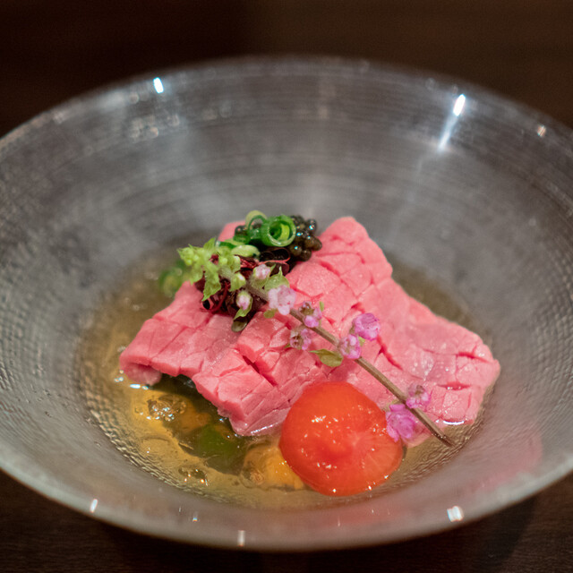 肉という素材の可能性を追求し、肉そのものが持つ上質な旨味を余すことなく引き出す。当店では、純粋に食材の美味しさを楽しんでいただく「肉粋(にくすい)」というスタイルで皆様をおもてなしいたします。日替わりで厳選する7種類の塩や、料理の数々は、まさに一期一会の味わい。接待・会食やデート・記念日・誕生日ディナーといったシーンにおすすめです。どうぞ心ゆくまでご堪能ください