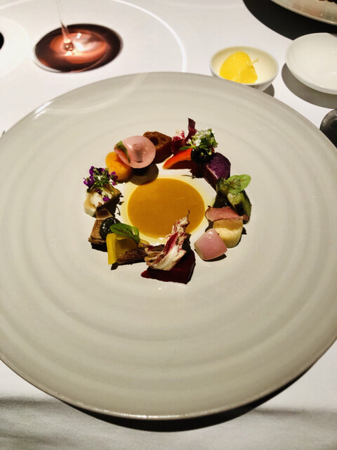 眺望豊かで寛いだ空間の中、上質な食材をフランス料理の伝統的な技法で丁寧かつシンプルに仕上げる本格的美食メニューを厳選ワインとともにご提供いたします。産地直送や季節ごとに国内外から選び抜く旬の食材を料理に取り入れ、素材そのものの旨みを引き出す、シンプルながら丁寧な味わいを一皿一皿に表現いたします。