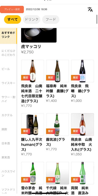 L.O. 料理22:00 ドリンク22:30