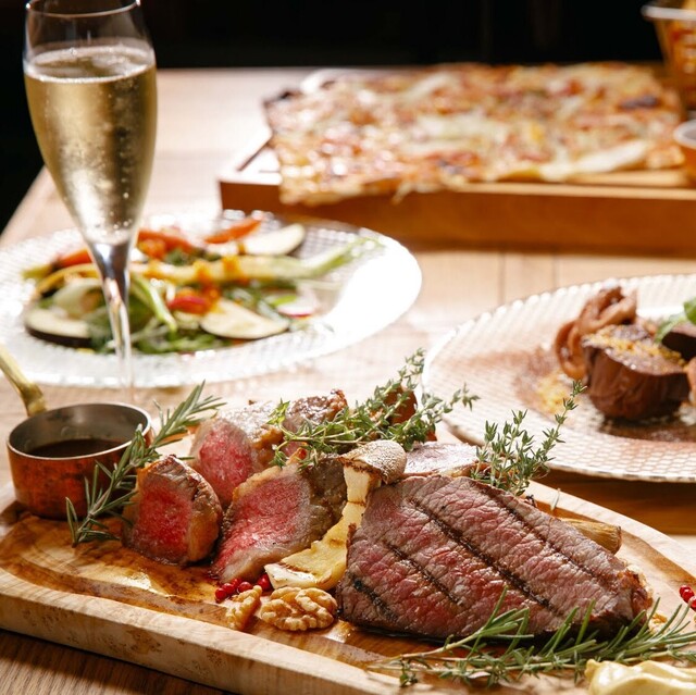 【ワンランク上の2H飲み放題】(クラフトビール4種含ビール5種・スパークリングも) 人気のシカゴピザと黒毛和牛ステーキコース...8,200yen 2名様~7品