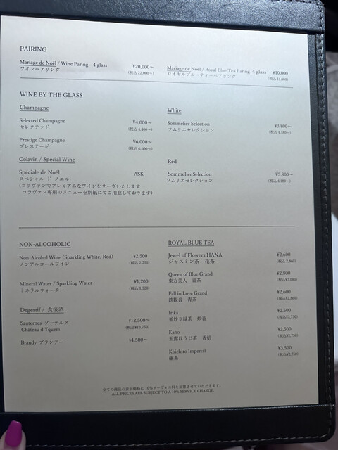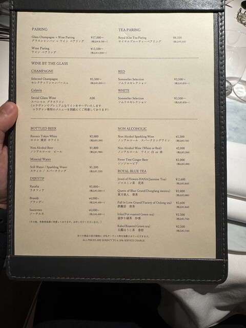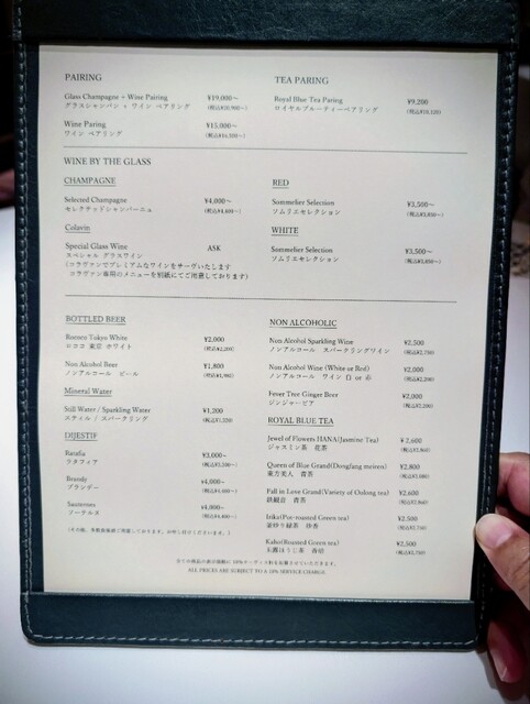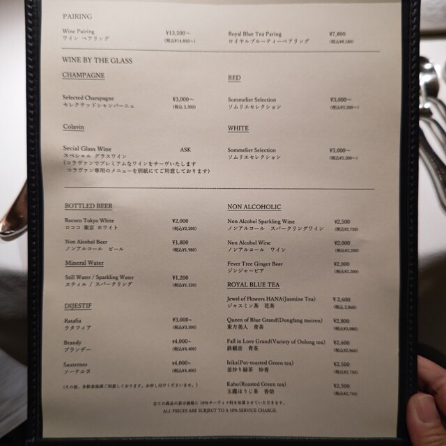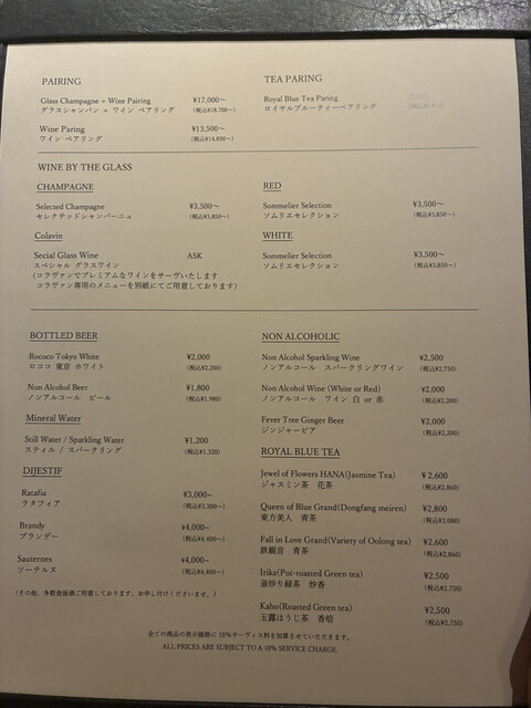 料金は全て税別、別途サービス料10%を頂戴いたします。