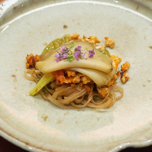 国内の名店を食べ歩いた店主が手掛ける、日本食の技や素材を活かしたタイ料理。滅多に出会えない高級食材を贅沢に用い、手間をかけて一から出汁を引いた逸品をどうぞ。名物「トムヤムクン」には、温泉水で育ったオニテナガエビを使用。味わい深いミソを出汁に使ったスープに、旬の野菜や魚介を炊き合わせのように仕立てます。日本で味わう、“タイでも存在しないタイ料理”。斬新な一皿とフランスワインのペアリングをご堪能あれ。