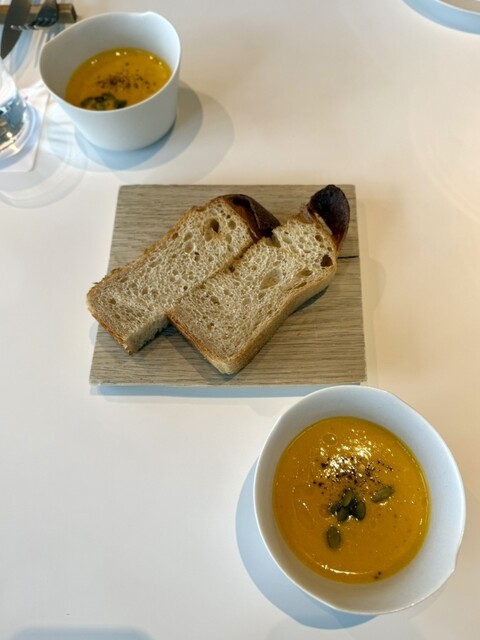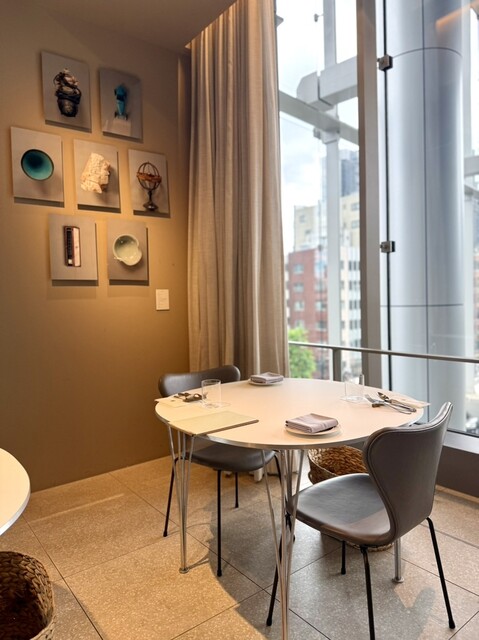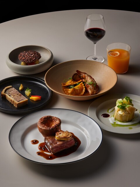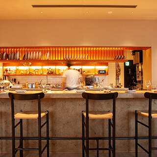 コンランショップがセレクトする上質な家具や食器、大理石のテーブルなどで統一されたこだわりの空間で、寛ぎのひと時をお過ごしいただけます。広々とした窓が開放感を演出。昼は東京の景色を一望でき、夜は美しい夜景をお愉しみいただけます。調理風景を眺めることができるシェフズカウンターは、ライブ感が味わえる人気のお席。団体様のご利用に最適な12名様まで座れるシェアテーブルも完備しております。