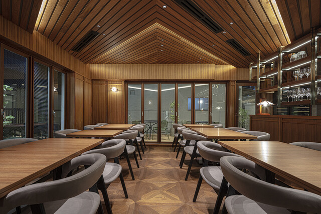 ゆったりとしたテーブルと椅子。 デザイナーが手掛けた上質な空間。
