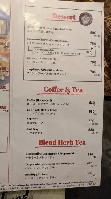 ディナータイムのみ テーブルチャージお一人様330円を頂戴しております。 ※12歳以下のお子様はチャージ無し ※コースにはチャージが含まれております