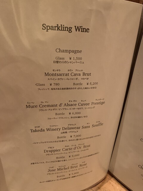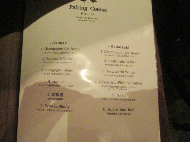 コースはサービス・チャージ料なし、アラカルトのみチャージ料¥500