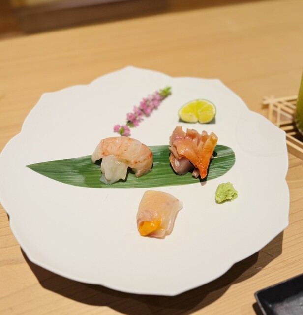 日本酒をはじめ、ワインや焼酎など、こだわりの鮨と相性の良いドリンクを各種取り揃えております。ワインをセレクトするソムリエには、鮨や和食、お酒全般の楽しみ方をデザインする「鮨とワインのアカデミー」の代表・大江氏を迎え、鮨の味わいを引き立てるような銘柄をご提供。日本酒だけでない、新たな味わいのペアリングもぜひご堪能ください。