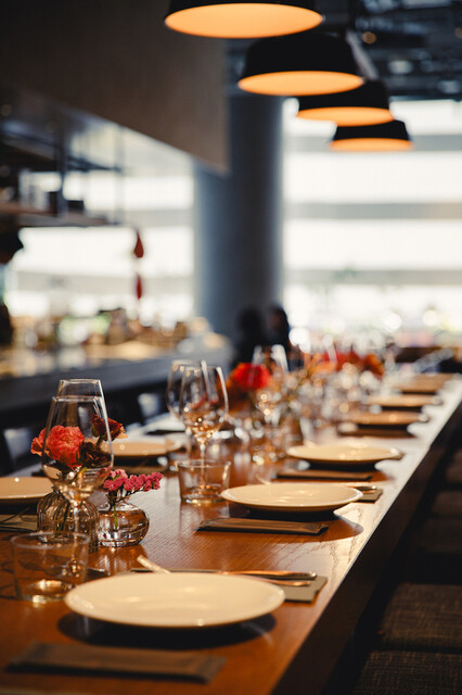 グリップグループの系列店では珍しく、プライベートな空間をご用意いたしました。個室ではありませんが、他のテーブルからは視界が逸れる、ちょっと贅沢な空間です。ビジネスの会食や、デート、家族だけの大切なお祝い事など、さまざまな要素でご利用いただけます。4名席のテーブルが2つ配された、プライベート空間です。