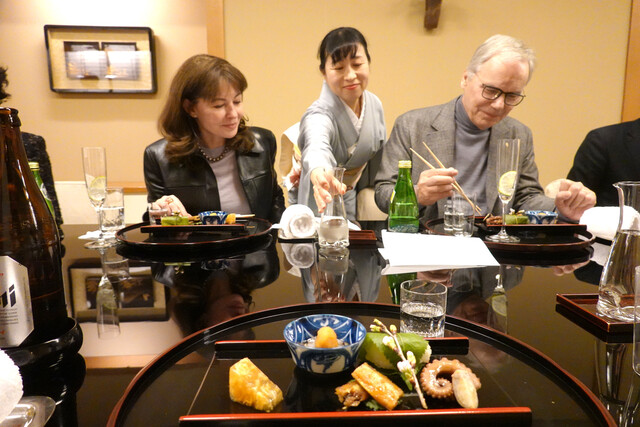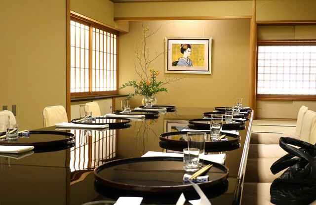 接待の多いお席にふさわしく、お料理の提供やご説明のタイミングには細心の注意を払い、和やかな雰囲気を作り出すための声掛けも工夫を重ねています。一席一席を大切に。心を込めておもてなしいたします。当店では「いらっしゃいませ」ではなく「ようこそお越しくださいました」とお客様をお迎え。世界が認める「日本のおもてなし」を広めるべく、日々努力を重ねてまいります。